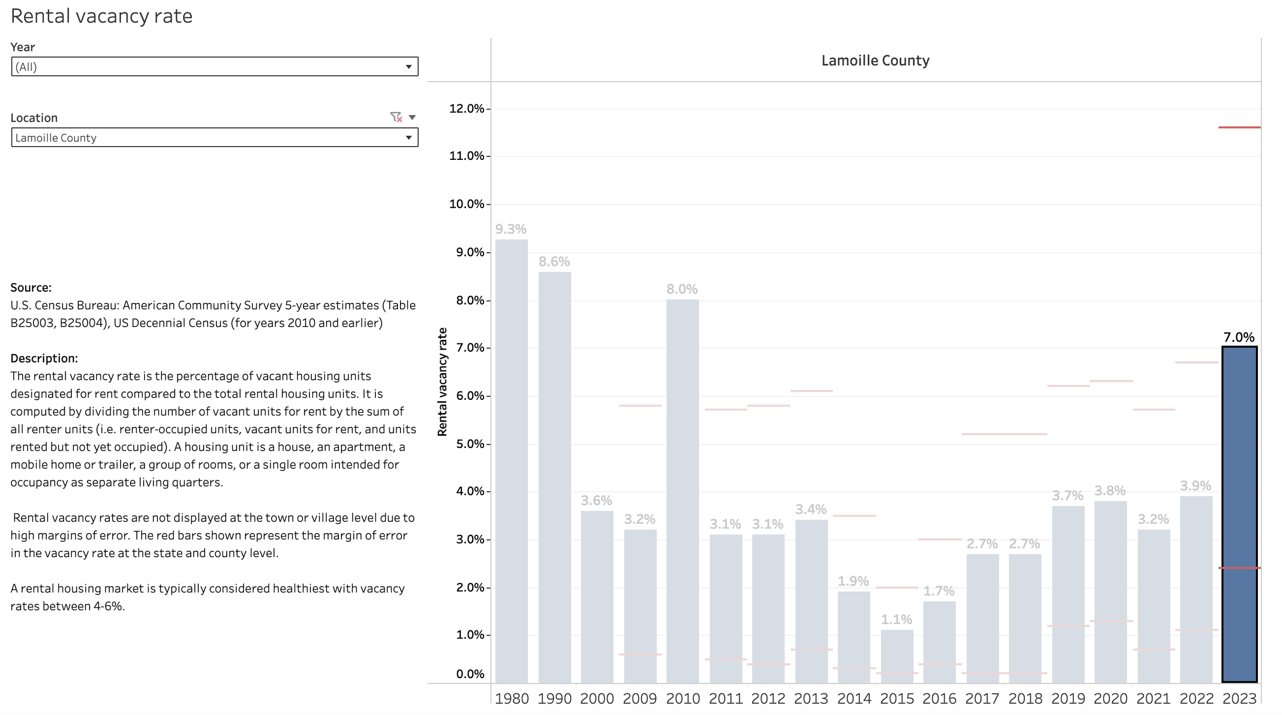 On the rental side, VHFA reports a 7% rental vacancy rate in Lamoille County. Housing experts have long held that a 5% vacancy rate indicates a "healthy” rental market. If short-term rentals were rapidly displacing long-term housing, we would expect to see plummeting vacancy rates. The data simply does not show that.
